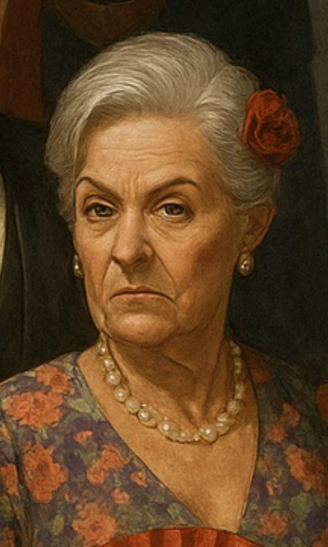 Pensionierte Tanzschulbesitzerin mit scharfem Blick und noch schärferem Fächer. Beherrscht jeden Raum wie ein Tanzsaal. Verheiratet mit Stefan – gemeinsam exzentrisch, charmant und nie ganz berechenbar.